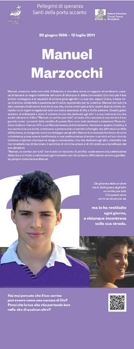Manuel era un ragazzo di appena 15 anni quando è stato strappato alla vita da un aneurima cerebrale. Abitava a Solarolo, un piccolo paesino nella provincia di Ravenna, dove era ben voluto da tutti per la sua bontà, la sua disponibilità e la sua simpatia. Ciò che lo caratterizzava era il suo sorriso a 360° sempre stampato sul viso. Manuel trasmetteva positività e buon umore a chiunque gli stesse accanto. Amava la Juventus ed il calcio in generale. Era sportivo e giocava nella squadra del suo paese. Amava la sua famiglia e i suoi nonni, che venivano prima di qualsiasi altra cosa. Aveva (e ha ancora) tanti amici coi quali trascorreva molto tempo, gli piaceva stare in compagnia, per lui tutti erano importanti. Amava gli animali e uno dei suoi desideri sarebbe stato quello di avere un cane, tanto che mise sul cancello la targhetta "attenti al cane" pur non avendone mai avuto uno. Una volta finite le medie, aveva scelto la stessa scuola che frequentava Michael, suo fratello, che per lui è sempre stato una figura di riferimento e protezione. Nella sua classe gli amici hanno chiesto e ottenuto che il suo banco rimanesse vuoto fino alla fine degli anni successivi, come a voler dire che se fosse tornato avrebbe ritrovato tutte le sue cose al loro posto.